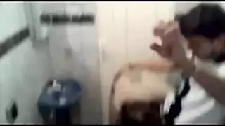 نيك محفوف بالمخاطر في الحمام: يضربها من الخلف في العلن